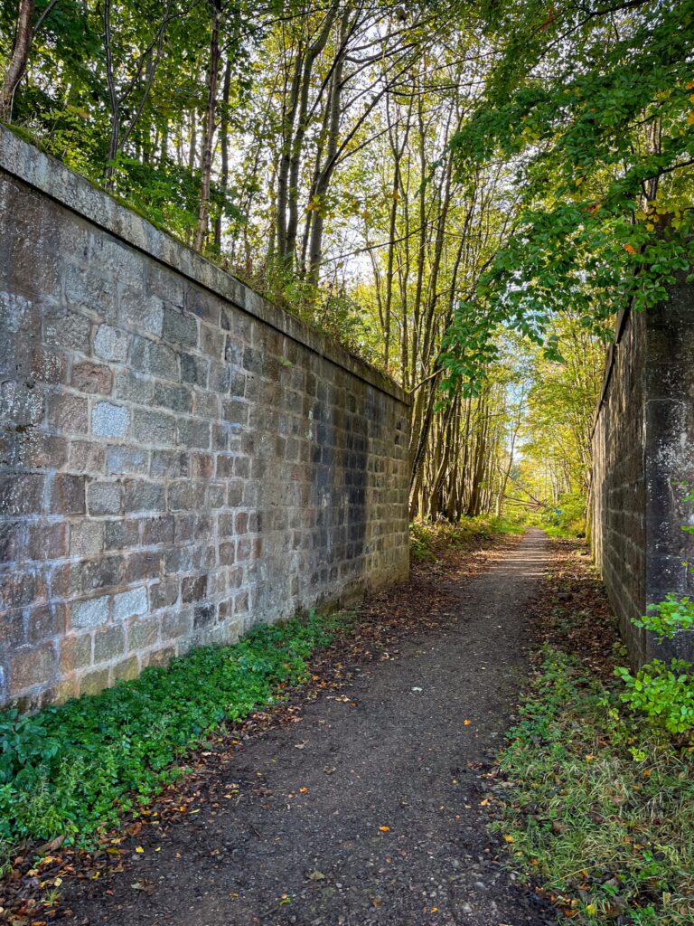 In the middle of Longside, the route of the line gets a bit confusing. I ended up going down some steps and through a tunnel and back up on the the old line, but, looking at the map, it appears there may be a better way along Station Road, which will take you out opposite the continuation of the line.
