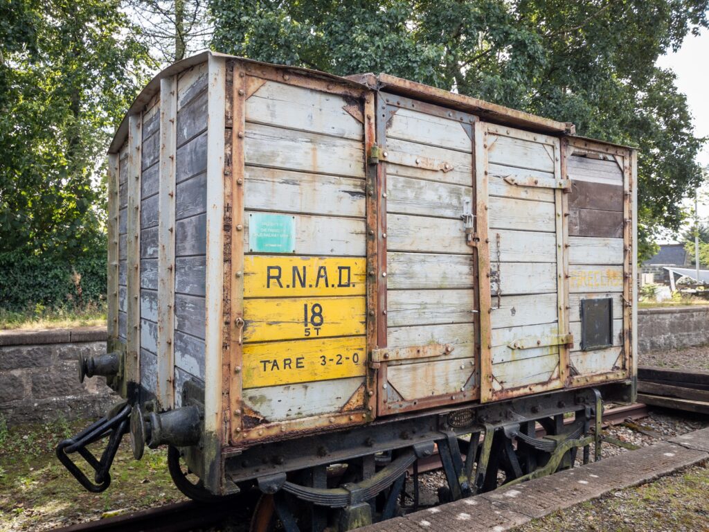 Next to one of the platforms stands a wagon that was originally used to transport convicts from Peterhead prison to the quarry where the rocks for the Peterhead harbour breakwater were quarried and broken. There is also a smaller gunpowder wagon, which, at the time of writing, is off-site being restored.